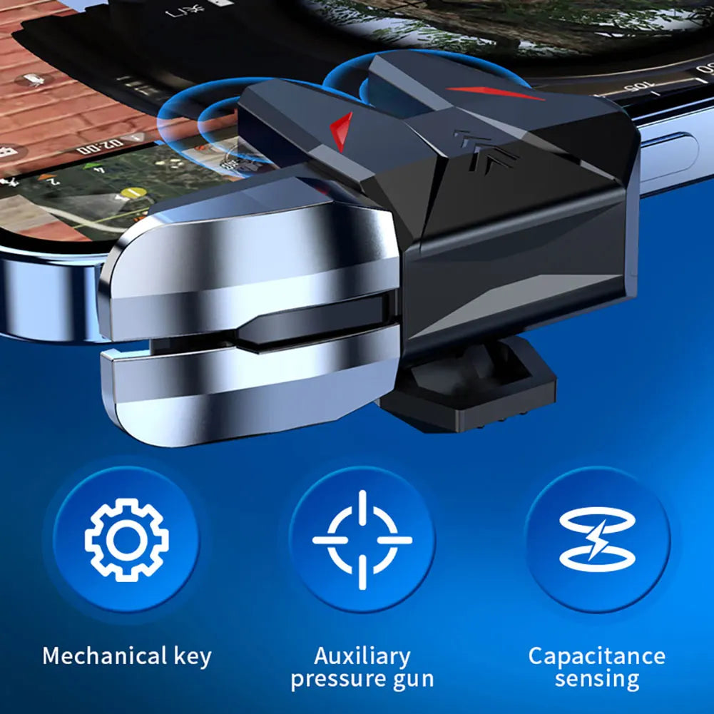 Upgrade your mobile gaming with the 2pcs Mechanical 6-Finger Phone Trigger, designed for precision and speed in competitive games like PUBG Mobile. This gaming accessory allows you to shoot, aim, and move simultaneously, giving you full six-finger control for faster reaction times.