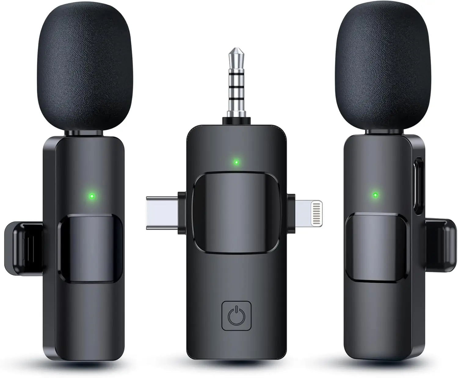 3 in 1 Wireless Microphone for iPhone Android Wireless Lavalier Microphone Noise Canceling Lapel Mic for Interview Video Podcast