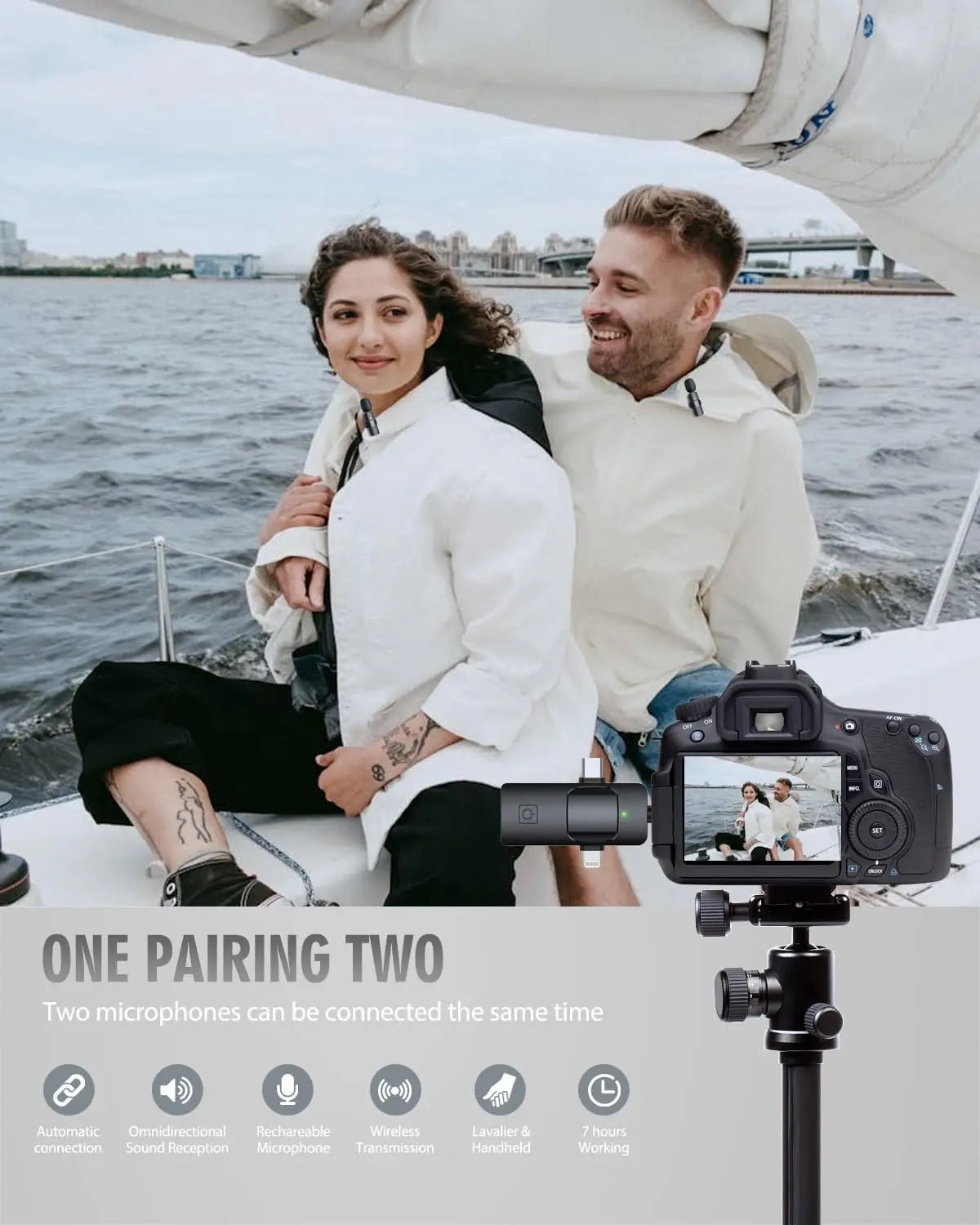 Capture crisp, professional-quality audio with the 3-in-1 Wireless Lavalier Microphone, designed for iPhone, Android, and other devices. Perfect for interviews, video production, podcasts, live streaming, and content creation, this lapel mic features advanced noise-canceling technology to reduce background interference and deliver clear, natural sound.