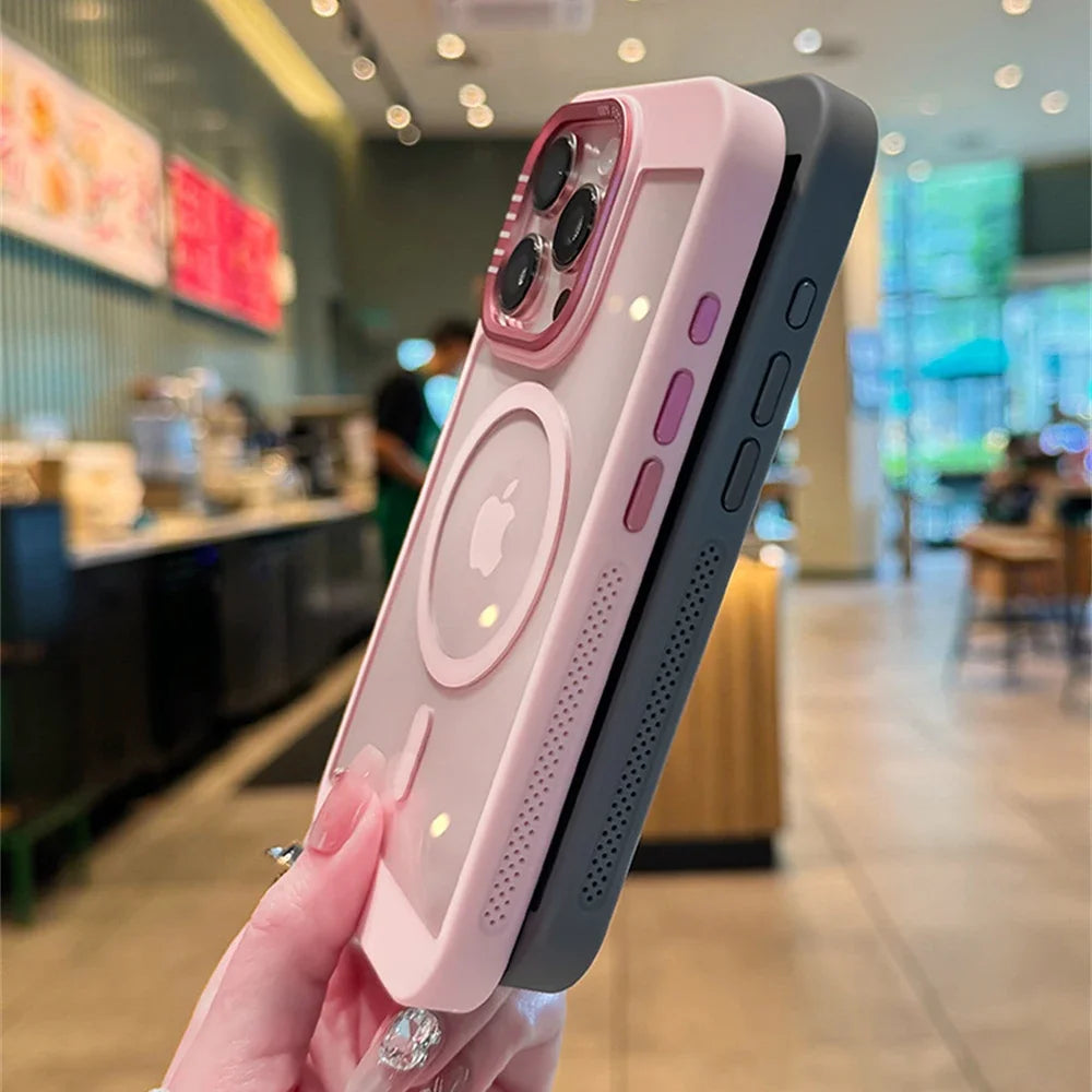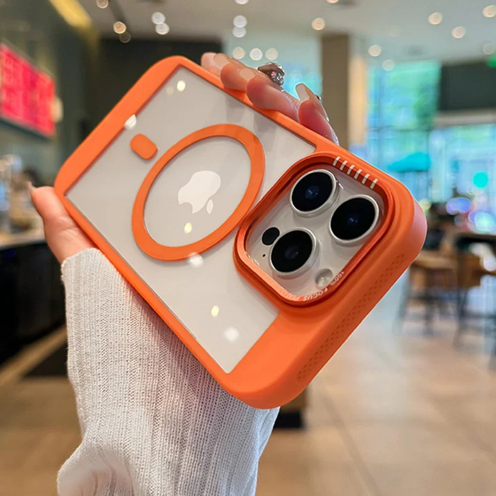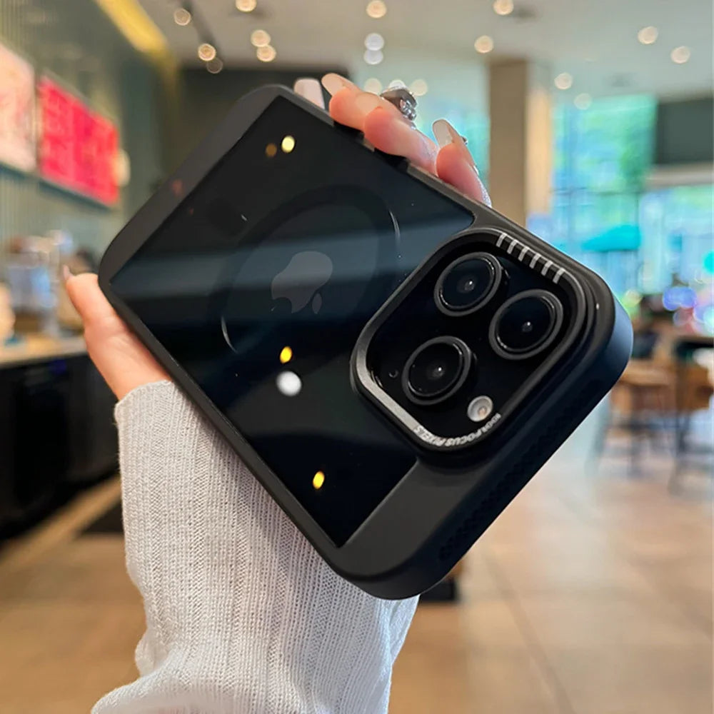 The heat dissipation frame prevents overheating during heavy use, and MagSafe compatibility ensures seamless wireless charging and accessory attachment. Lightweight, slim, and luxurious, this case is perfect for users who want protection without bulk.