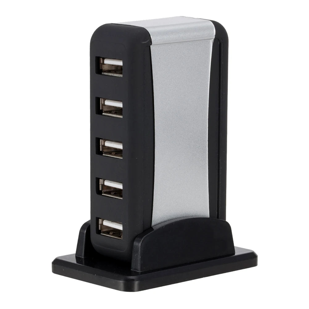 Vertical 7-Port USB 2.0 Hub Multi USB Splitter with Power Adapter PC Accessories